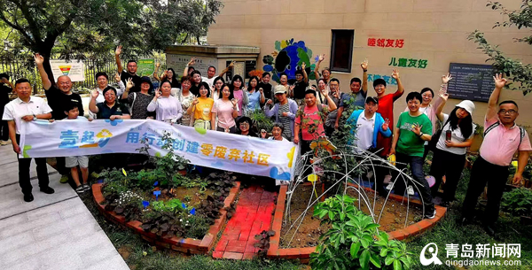與會代表觀摩城陽街道大北曲后社區垃圾分類投放。