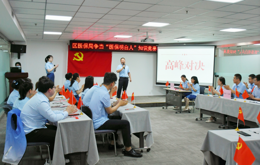 三是擂臺“比”,亮真功。沙場秋點兵,賽場見鋒芒。組織開展“學知識、強本領、創新功--爭當‘醫保明白人’知識競賽”活動,設置小試牛刀、爭分奪秒、高峰對決三個環節,采取大屏幕滾動點兵答題形式進行競答。通過競賽,充分展現“醫保明白人”培訓效果,提升“醫保明白人”隊伍整體業務素質和服務能力。