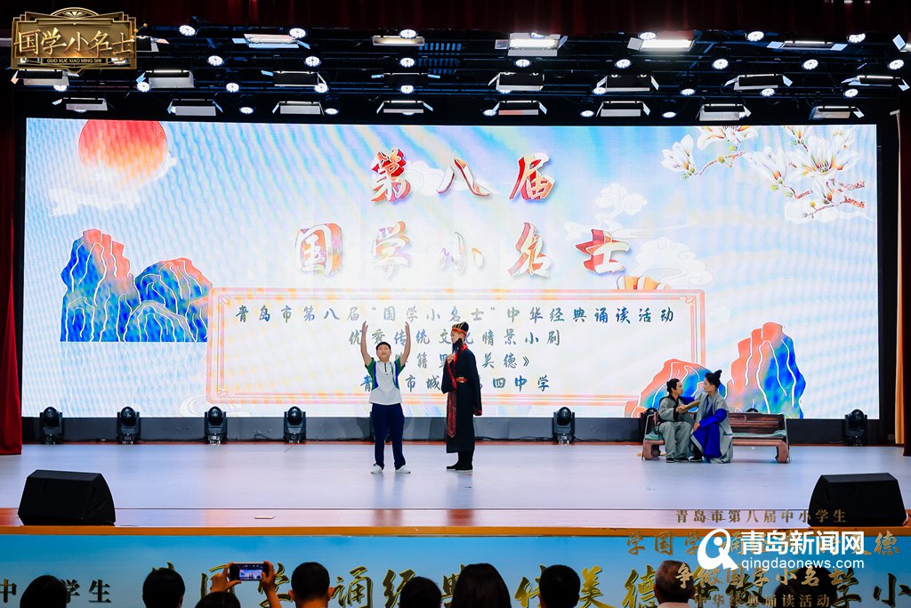 青島市中小學生“學國學 誦經(jīng)典 傳美德 爭做國學小名士”中華經(jīng)典誦讀活動已成功舉辦8屆,全市中小學校高度重視、精心組織,國學學習熱情持續(xù)高漲。今年除了競賽活動,還增加了優(yōu)秀傳統(tǒng)文化情景小劇創(chuàng)作表演大賽、中華家庭詩詞擂臺賽、“詩潤萬家”系列活動、“國學小名士”IP形象設(shè)計大賽、中華文化體驗廊道誦讀打卡等互動性更強、覆蓋面更廣、參與方式更加多元的活動。活動現(xiàn)場還為情景小劇創(chuàng)作表演大賽獲獎作品進行了頒獎。