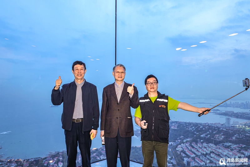 本次“高質量發展看青島”采風行,全國網盟媒體人來到了81層的云上海天領略“高空看海”的非凡魅力。置身云上海天,可以從八大關、湛山寺到香港路繁華商圈,細數舊城到新城的變遷,全方位見證山、海、城、帆,見證貨輪啟航,見證繁忙海港,見證綠樹紅瓦與燈火輝煌。
