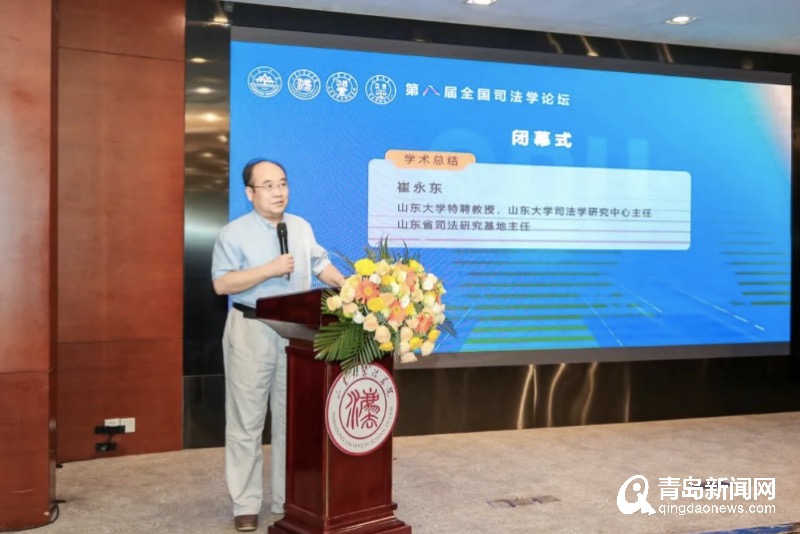 在閉幕式上,山東大學特聘教授、山東大學司法學研究中心主任、山東省司法研究基地主任崔永東圍繞著論壇的主題和子議題以及本屆論壇的主要特點作了精彩的學術總結,指出本屆論壇具有創新性強、針對性強、戰略性強的特點,并對“全面準確落實司法責任制,加快建設司法公信力”的前景進行了展望。