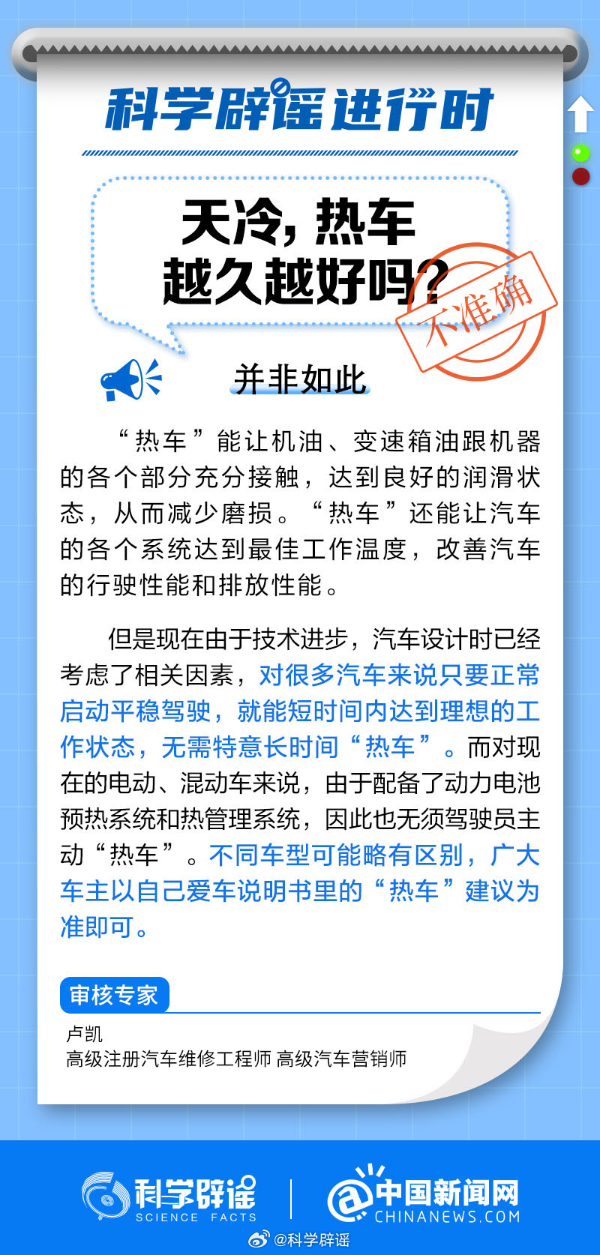 “熱車”能讓機油、變速箱油跟機器的各個部分充分接觸,達到良好的潤滑狀態,從而減少磨損。“熱車”還能讓汽車的各個系統達到最佳工作溫度,改善汽車的行駛性能和排放性能。但是現在由于技術進步,汽車設計時已經考慮了相關因素,對很多汽車來說只要正常啟動平穩駕駛,就能短時間內達到理想的工作狀態,無需特意長時間熱車。