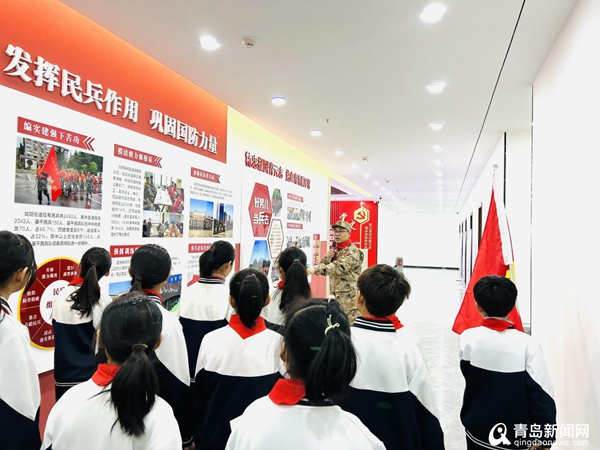 在城陽街道人民武裝部國防教育知識展示廳,城陽區紅色教育宣講員張周偉向參加活動的同學介紹了征兵體檢的相關流程,民兵隊伍是如何發揮突擊隊作用的,人民解放軍發展史、中國共產黨發展史以及城陽當地的革命英模。學生們認真聽、仔細記、深刻悟,增強了愛國擁軍的意識,增強了報國衛國的動力。
