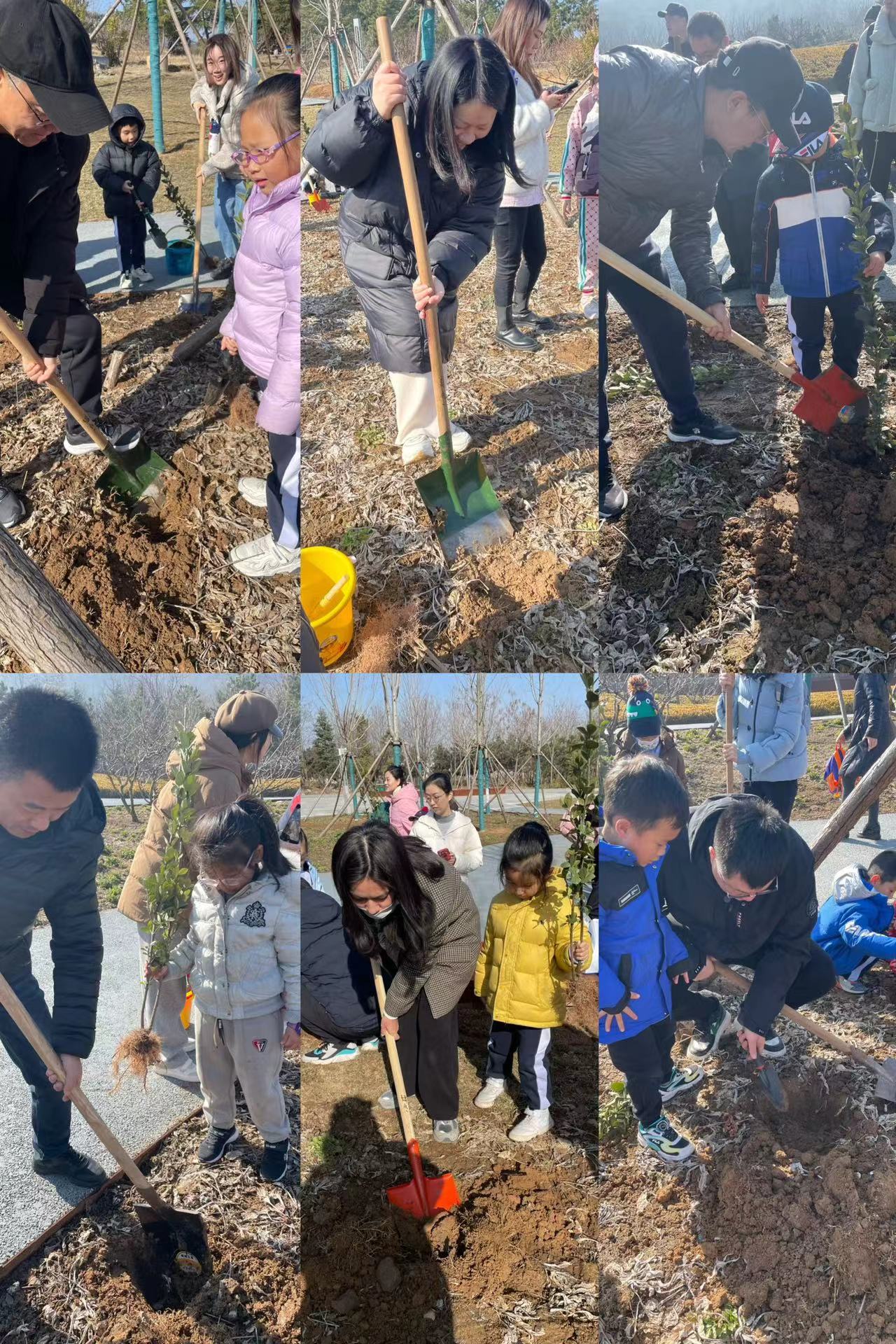 同學們有序地挖坑,栽苗,培土,澆水……一雙雙小手不停的忙碌著,每一個動作都飽含著對小樹的呵護。雖然春寒料峭,但是細小的汗珠已經悄然滲出額頭。家長們也積極投入到這次活動中,大手拉小手一起種下的每一棵樹苗既是對綠色生態的期待,也是對親情延綿的祝愿。