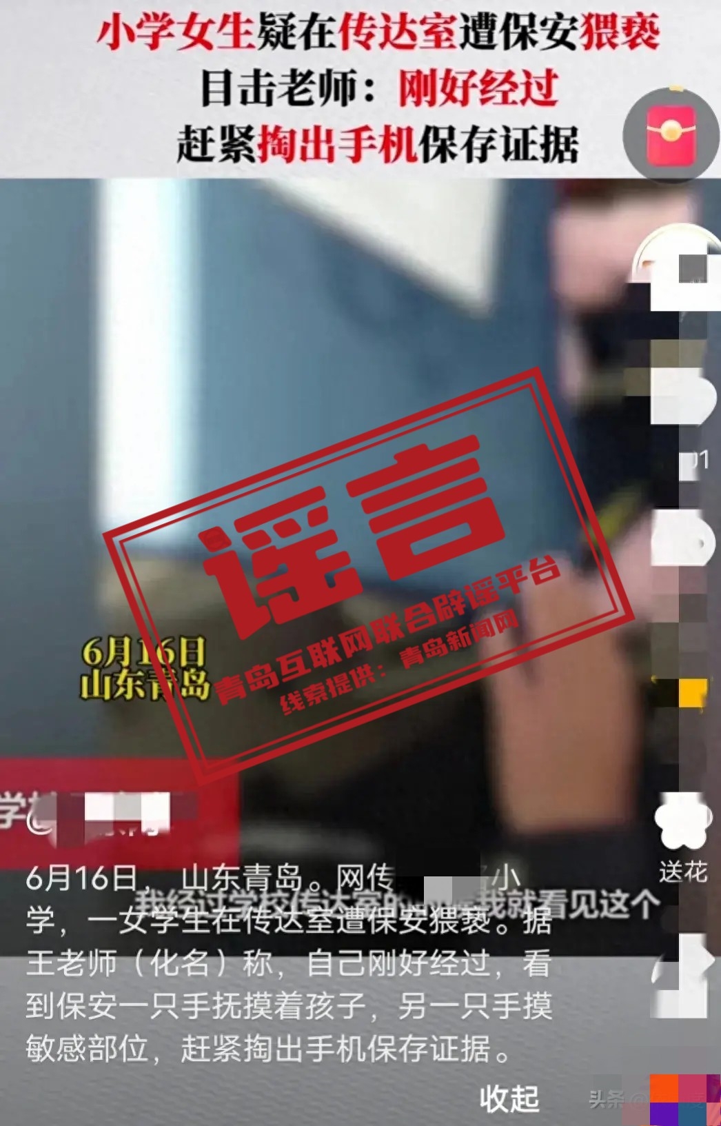 青島新聞網訊 6月16日下午,微博、今日頭條平臺有賬號發布消息稱“學生在傳達室遭保安猥褻”,經調查,此事系謠言。