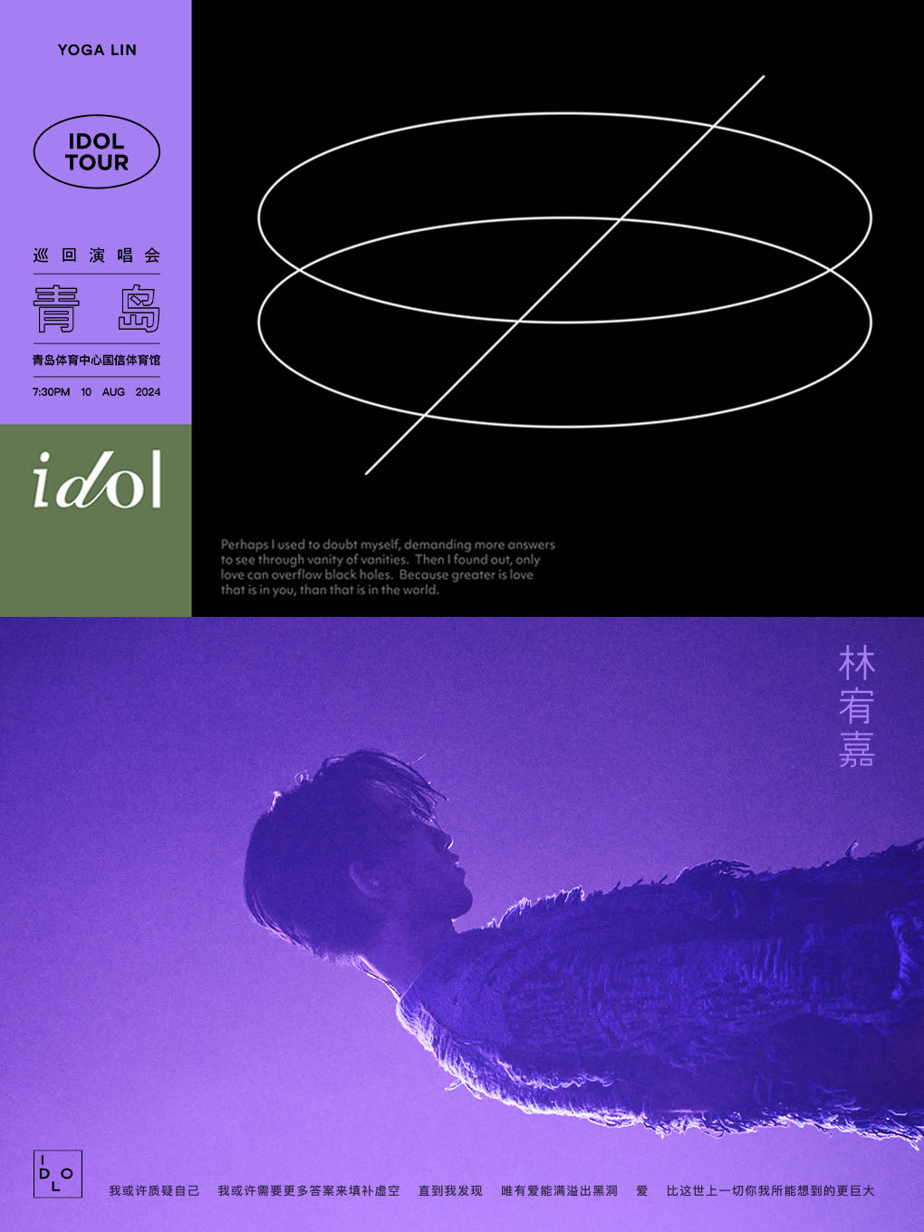 林宥嘉idol世界巡回演唱會青島站,8月10日周六 19:30,青島國信體育館,門票380元-1580元。