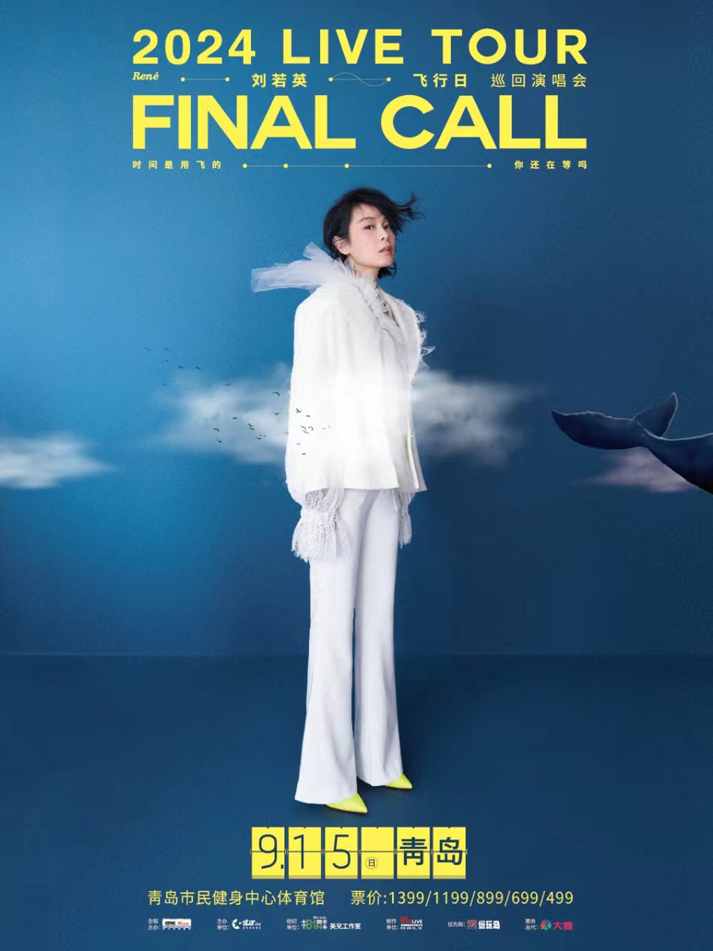 劉若英【飛行日】巡回演唱會青島站,9月15日周日 19:00,青島市民健身中心體育館,門票499元-1399元。
