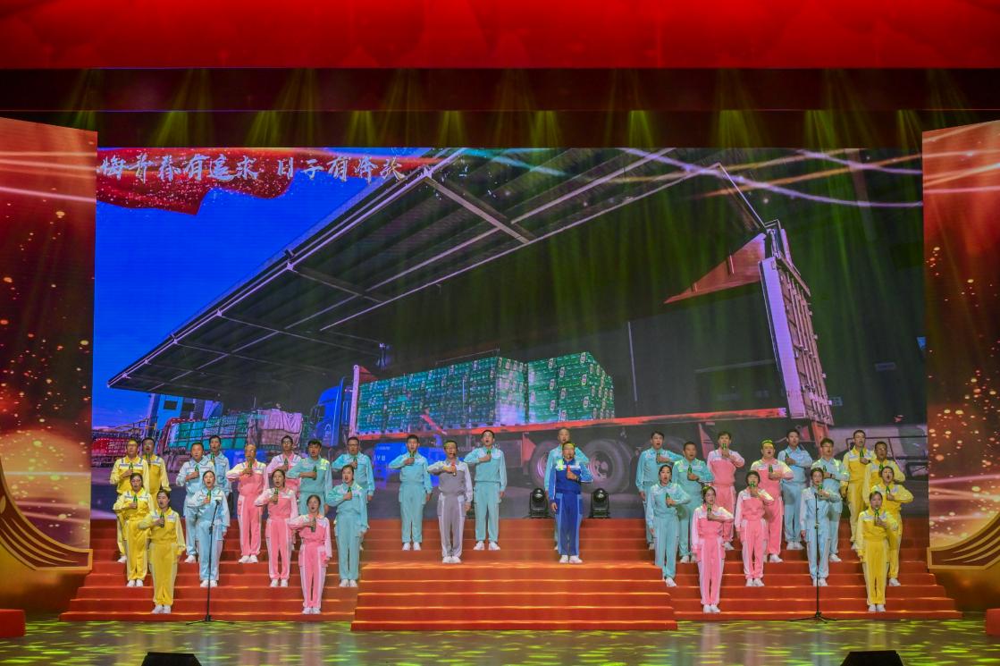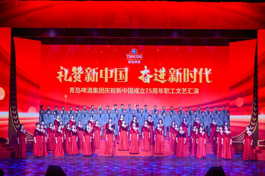 9月27日,青島啤酒集團舉辦“禮贊新中國 奮進新時代”慶祝新中國成立75周年職工文藝匯演。來自青島啤酒全國各地的職工代表齊聲唱響愛國贊歌,謳歌新中國成立75年來的輝煌成就,凝聚起青島啤酒加力提速高質量發展的澎湃合力。