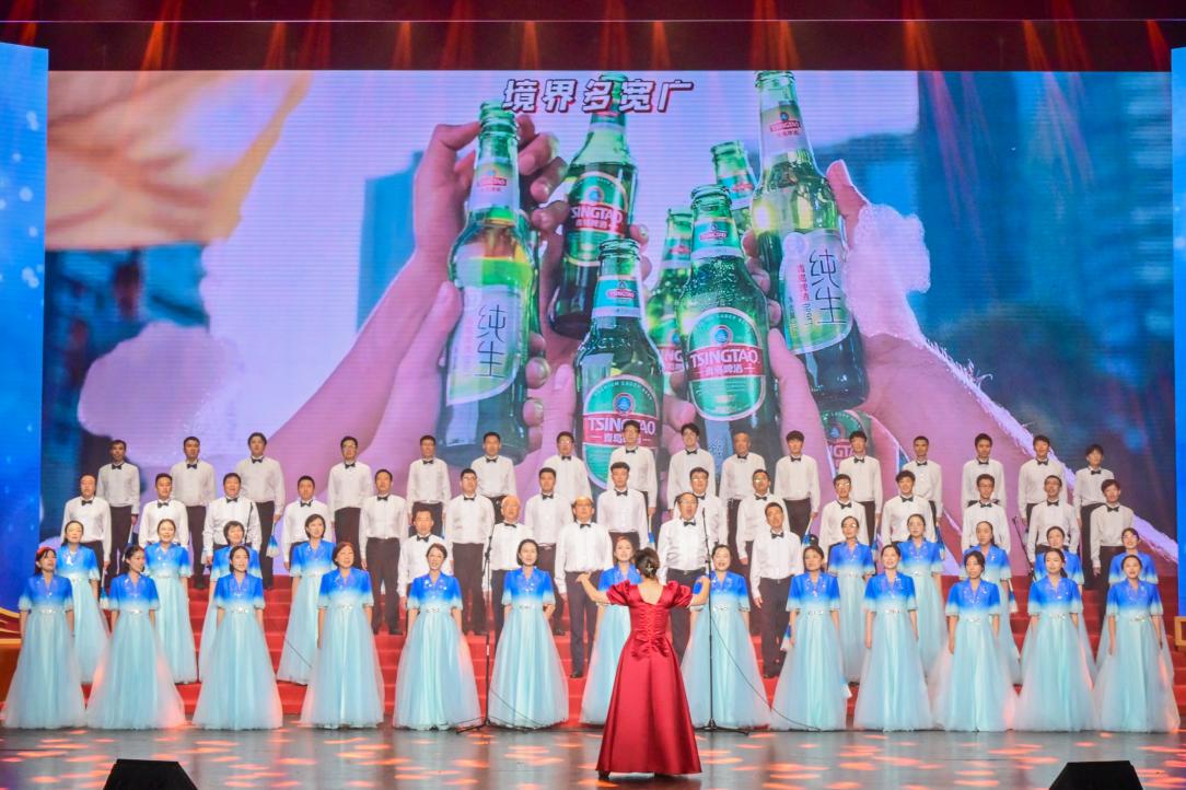 回顧與祖國共繁榮、同奮斗的光輝歲月,更是為了開啟奮進新時代的壯闊篇章。青島啤酒來自啤酒、健康飲品和時尚文旅三大板塊的職工齊唱《為生活創造快樂》《榮譽》《歌唱祖國》等歌曲,歌聲里注入加力提速高質量發展的滿腔豪情,將文藝匯演推向高潮。近年來,青島啤酒集團聚焦啤酒主業,從釀造好啤酒到創造美好生活,持續創新業態,切實推動青島啤酒加快建設世界一流企業,實現高質量發展。