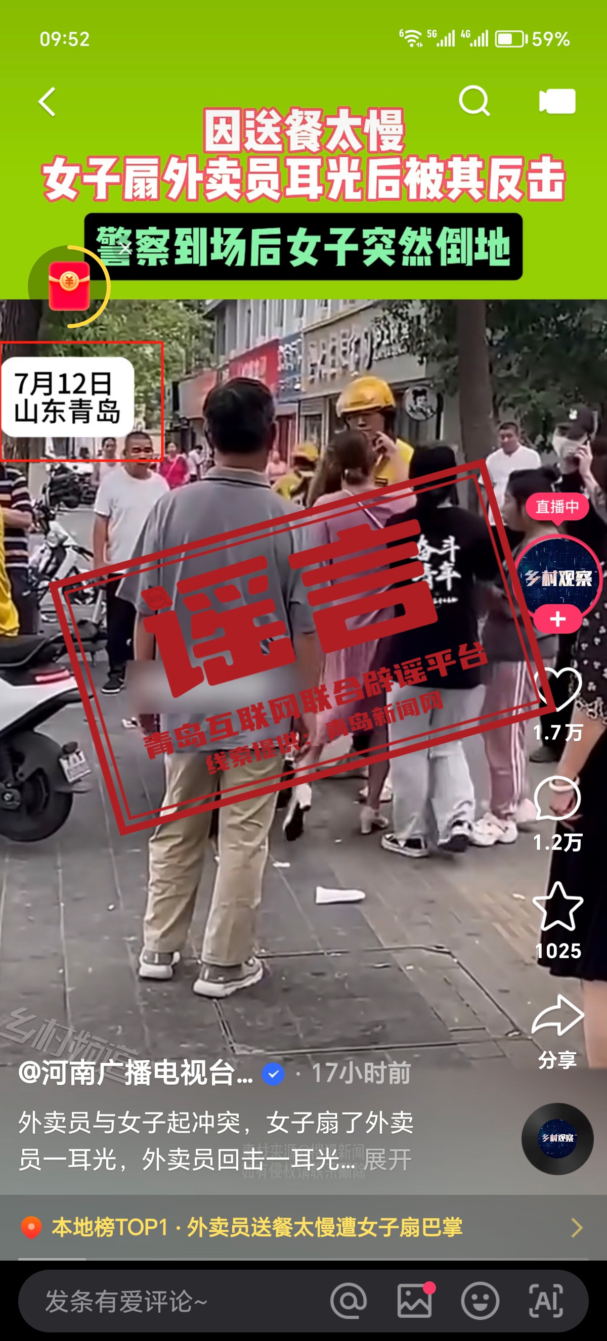 青島新聞網訊近日,有多個媒體賬號和網民在網絡上發布視頻,內容顯示一名女子打了外賣員一個耳光,外賣員隨即還手,標注此事發生在青島。經青島新聞網記者調查核實,此事并非發生在山東青島。