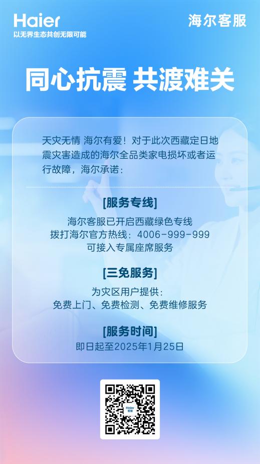 此外,海爾服務(wù)已開(kāi)通三免服務(wù),為海爾系全品類家電免費(fèi)上門、免費(fèi)檢測(cè)、免費(fèi)維修,并預(yù)備好服務(wù)兵8人,車輛2輛,待可進(jìn)入災(zāi)區(qū)后實(shí)施。海爾客服也針對(duì)西藏地區(qū)開(kāi)通專線,確保震區(qū)用戶撥通直進(jìn)金牌客服坐席。據(jù)了解,海爾智家金牌客服團(tuán)隊(duì)是一支專業(yè)、高效、富有經(jīng)驗(yàn)的客服隊(duì)伍,可為地震受災(zāi)區(qū)域的用戶提供更加及時(shí)、有效的幫助,從而減輕他們?cè)跒?zāi)后的困擾和不便。