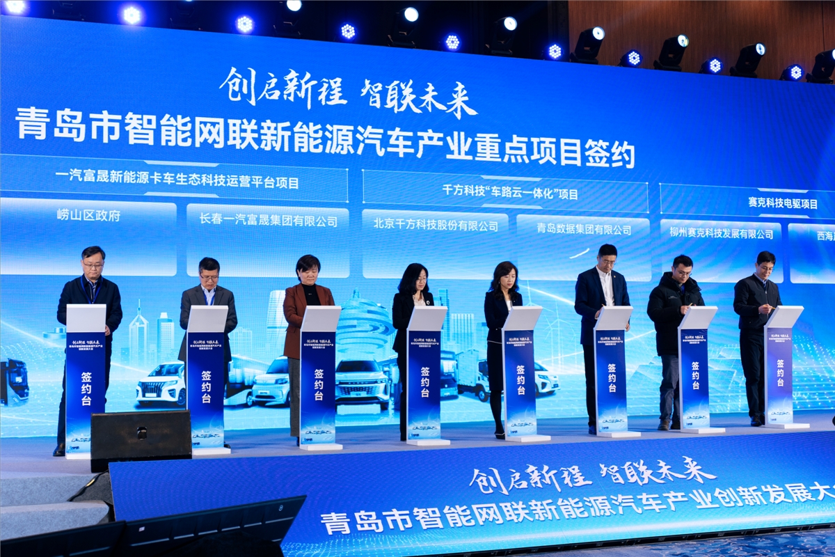 今日的青島,匯聚產學研“最強大腦”,擁有產業政策“全方位支撐”,打造營商環境“一流服務”,坐擁得天獨厚區位優勢,正吸引一系列優質項目落戶。本次大會緊抓行業趨勢、深化合作對接,必將為青島智能網聯新能源汽車產業高質量發展注入新的動能。會上,“車路云一體化”智能網聯(青島)應用研究院有限公司、一汽富晟新能源卡車生態科技運營平臺、千方科技“車路云一體化”、馭勢科技港口自動駕駛項目、賽克科技電驅等優質項目簽約落地,智能網聯新能源汽車產業集聚能力和規模效應持續凸顯。