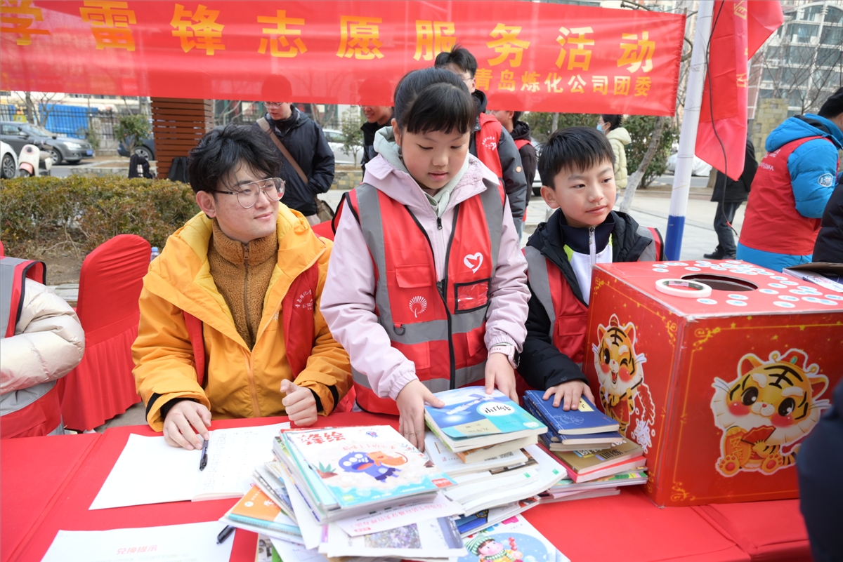 消防科普的對(duì)面,社區(qū)居民們?cè)谇嗄曛驹刚叩囊龑?dǎo)下有序排隊(duì),利用手中的廢舊電池和圖書兌換綠植。“青島煉化公司志愿者們每年都會(huì)組織類似的環(huán)保活動(dòng),正得益于這些活動(dòng),我們的環(huán)保意識(shí)逐漸提升,家里的孩子們也學(xué)會(huì)了科學(xué)保存廢舊電池。”社區(qū)居民李先生是連續(xù)第三年參加廢舊電池?fù)Q綠植活動(dòng),他非常高興地說到。