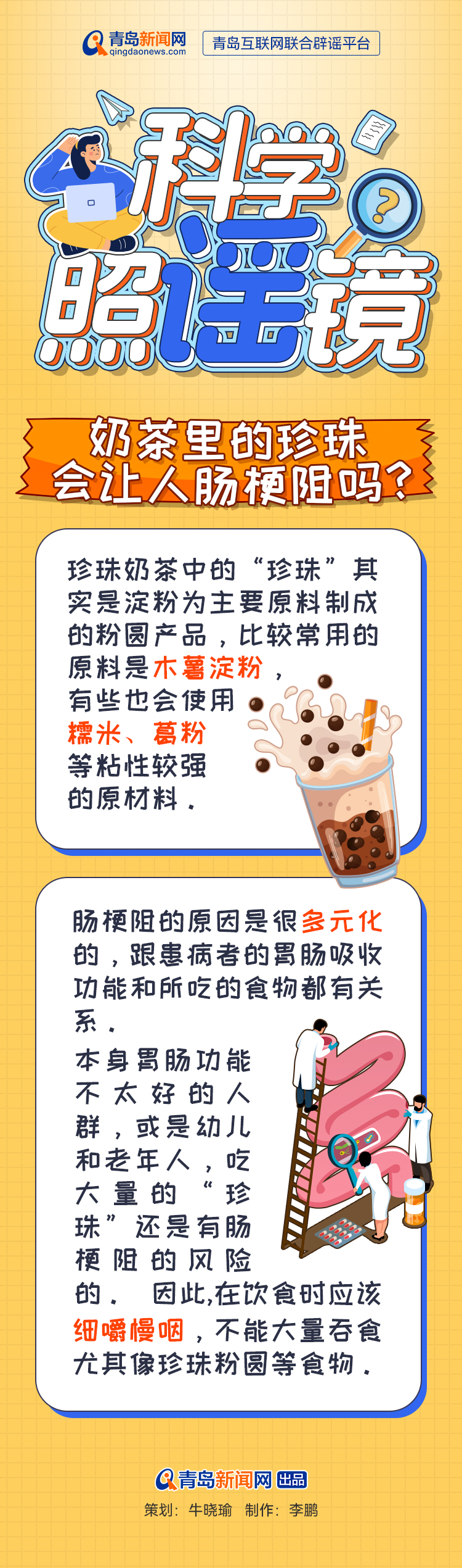 【科學照“謠”鏡】奶茶里的“珍珠”會讓人腸梗阻嗎?