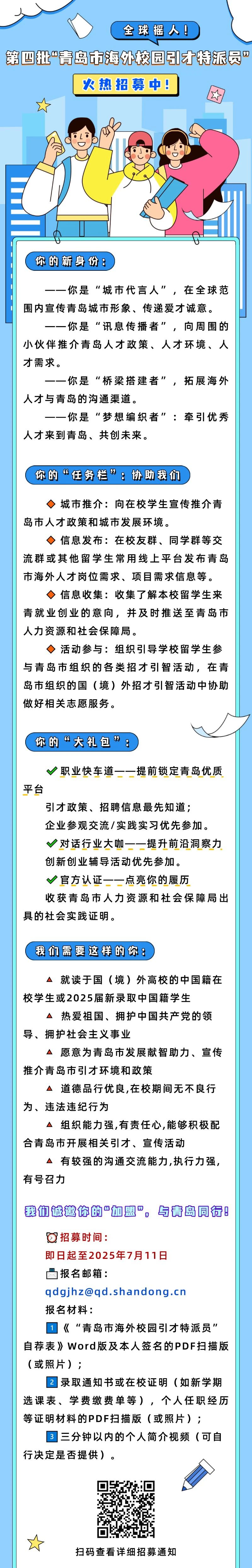 全球搖人!第四批“青島市海外校園引才特派員”火熱招募中!