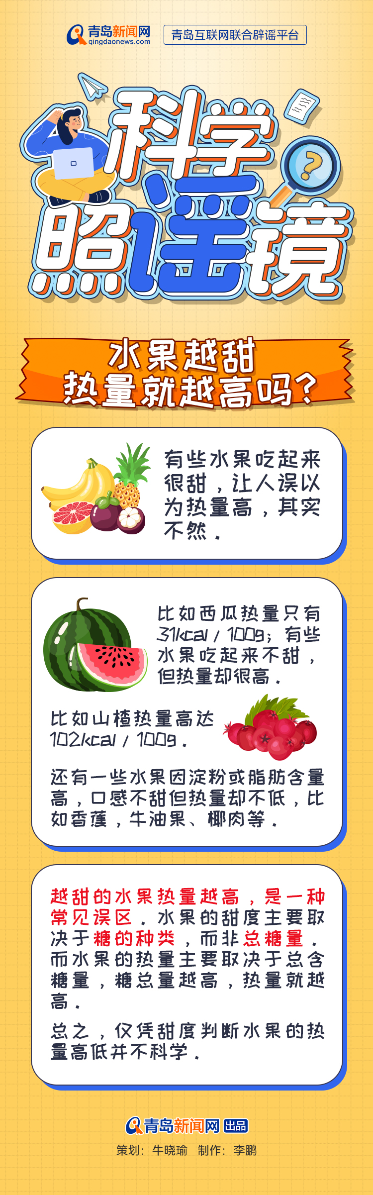 【科學照“謠”鏡】水果越甜熱量就越高嗎?