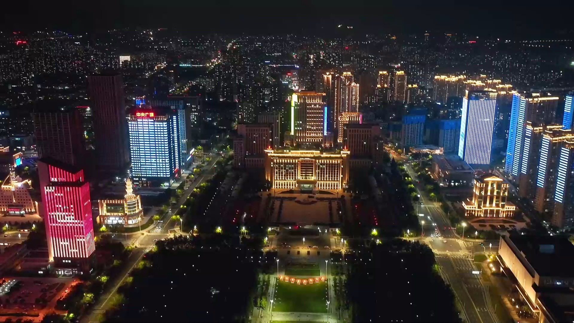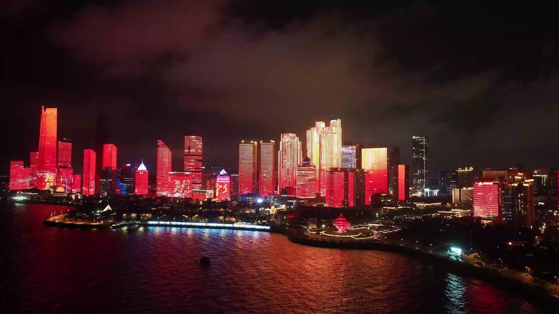 國慶主題燈光秀閃耀青島浮山灣