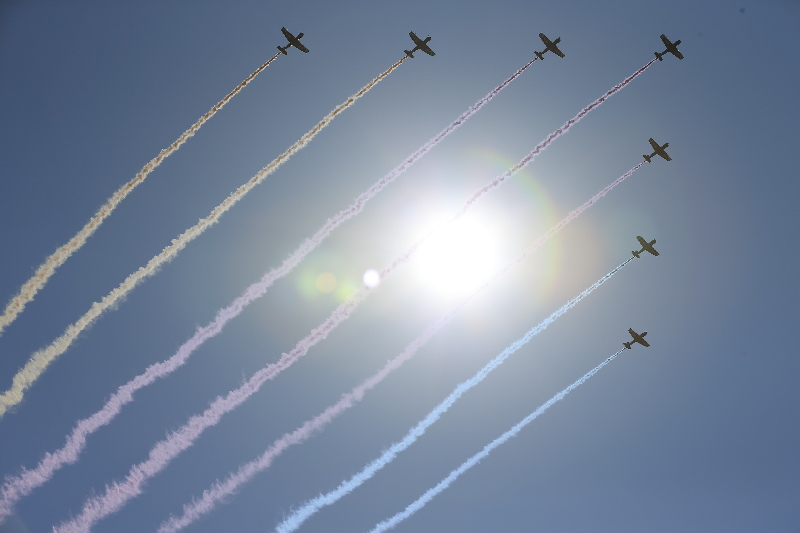 高清:大閱兵現場空中護旗方隊通過天安門廣場