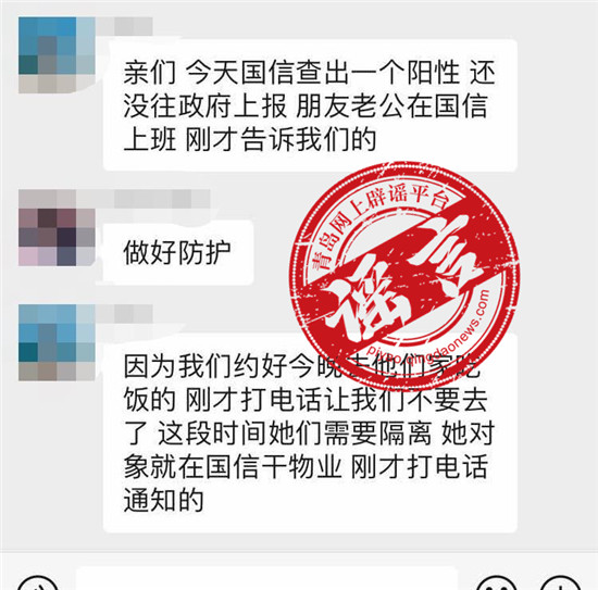 【辟謠】網(wǎng)傳青島國信新增一例新冠患者?官方回應(yīng):假消息