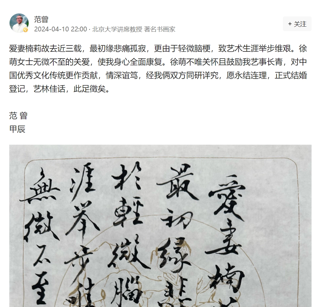 范曾新婚妻子為名模艾尚真?本人下場辟謠