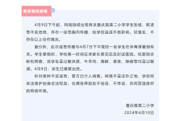 青島重慶路第二小學(xué)學(xué)生墜樓、遭遇欺凌?官方回復(fù):信息不實!