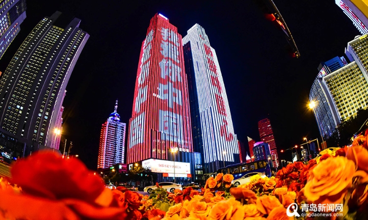 我愛你中國!青島前海燈光秀向祖國深情表白