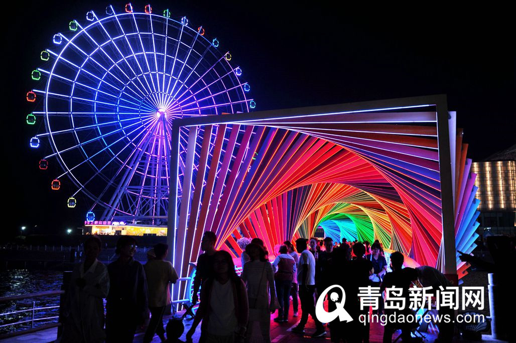 國慶節(jié)夜晚,青島網(wǎng)紅彩虹橋又火了!時尚打卡新方式