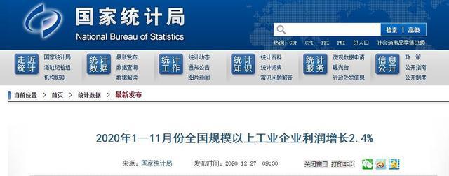 統計局:1—11月份全國規模以上工業企業利潤增長2.4%