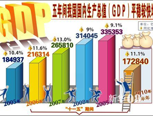 “十一五”是中國經濟極不尋常的5年,在國際金融危機、汶川大地震以及旱災、水災、雨雪冰凍等自然災害次第發生的情況下,我們走過了跌宕起伏的道路,共同經受了空前嚴峻的挑戰。這5年,中國經濟既有高增長低通脹的理想格局,亦有高增長高物價的過熱場面,更因百年一遇的國際金融危機沖擊而遭遇了經濟急速下滑、通脹和通縮輪番登場的考驗。在黨中央、國務院的正確領導下,在全國人民的共同努力下,2010年雖然還未落幕,中國經濟“十一五”實現新