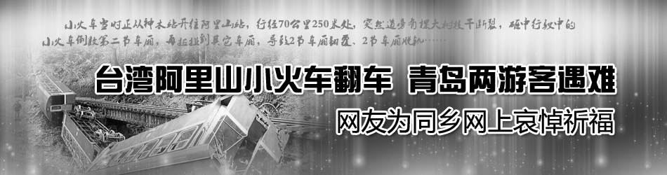 臺灣阿里山小火車27日中午發(fā)生翻車事故,兩名青島乘客1死1失蹤。 當?shù)叵谰直硎荆@起意外發(fā)生在中午12時17分左右,一列掛有8節(jié)車廂的小火車從神木站開往阿里山站,行經(jīng)70公里250米處,突然有棵大楠木枝干斷裂,剛好擊中最后一節(jié)車廂,結果造成多節(jié)車廂翻覆,釀成意外。[