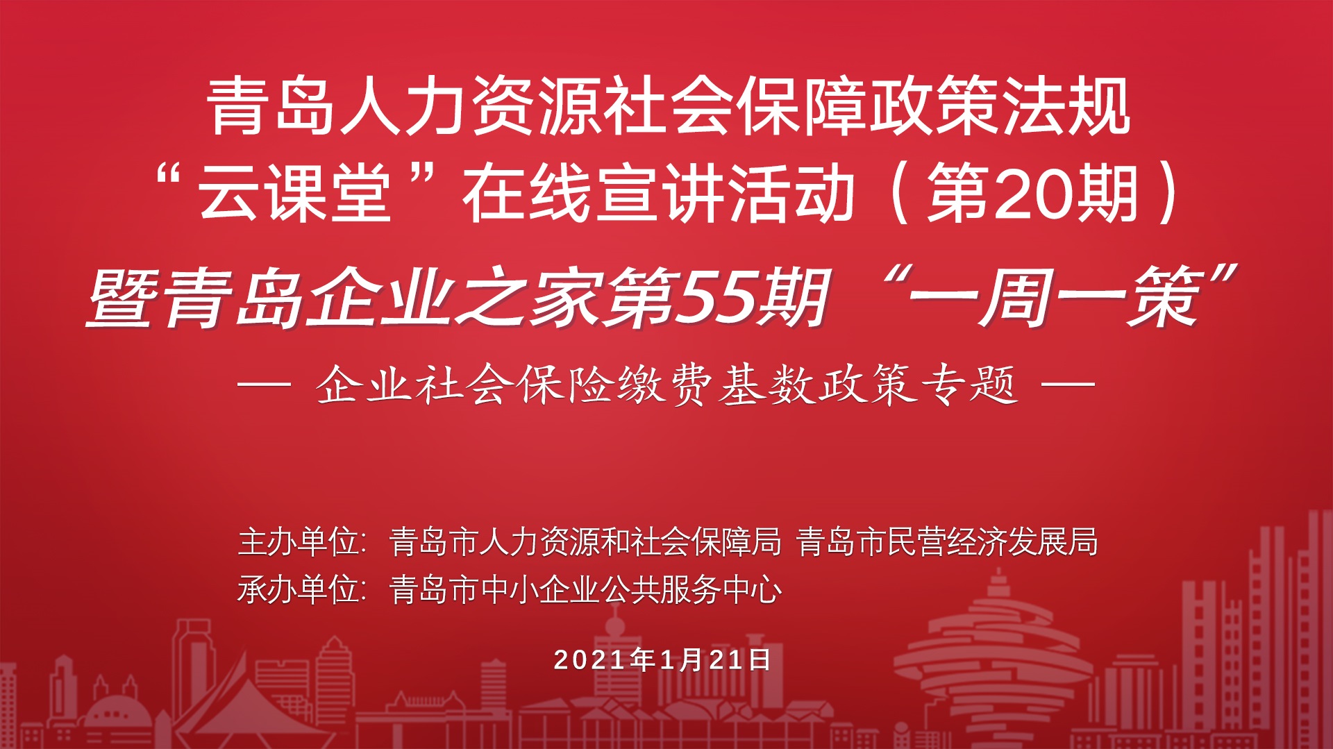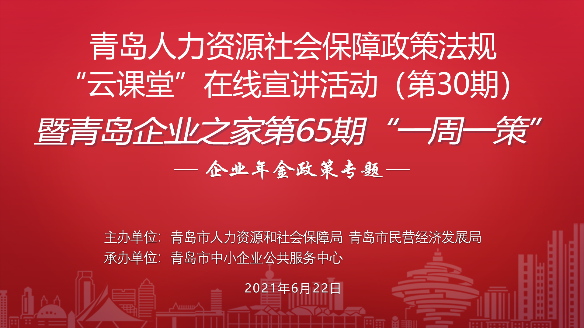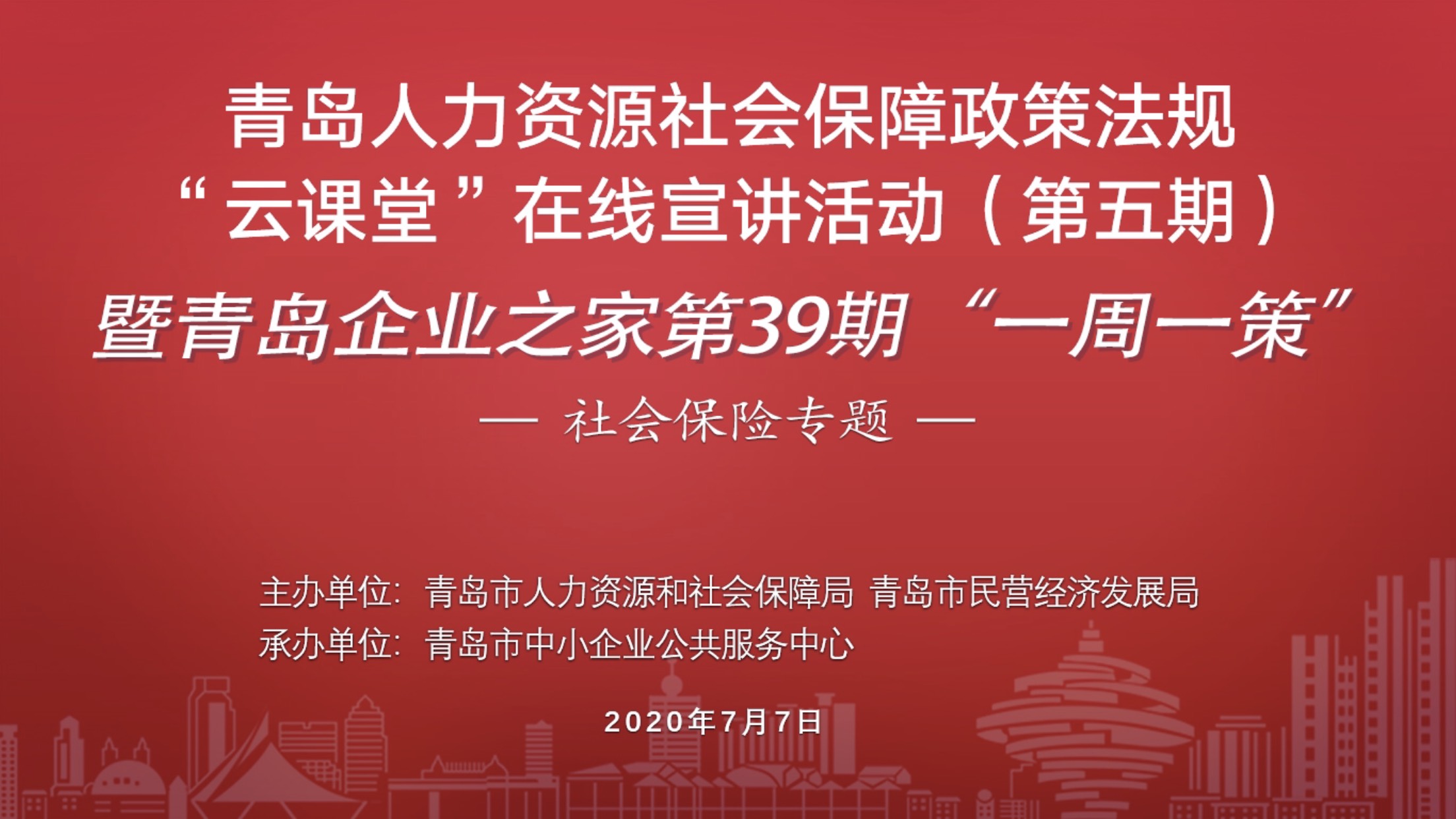為進一步發揮人社政策惠企惠民效應,幫助企業了解社會保險關系轉移接續及社保征繳政策熱點問題。市人力資源社會保障局擬于7月7日下午聯合市民營經濟局開展人力資源社會保障政策法規“云課堂”在線宣講活動。本期宣講內容:社會保險關系轉移接續及社保征繳政策熱點問題。